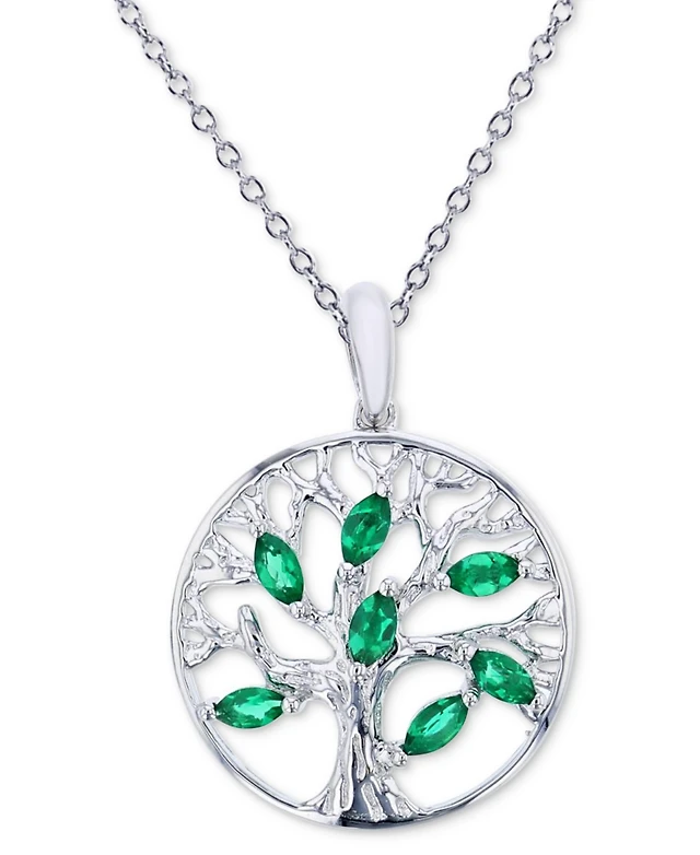 Lab Grown Emerald Family Tree 18" Pendant Necklace (1/2 ct. t.w.) in Sterling Silver