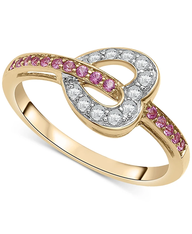 Lab-Grown Pink Sapphire (1/5 ct. t.w.) & Lab-Grown White Sapphire (1/4 ct. t.w.) Heart Ring in 14k Gold-Plated Sterling Silver