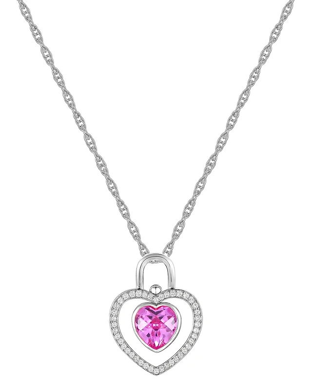 Lab Grown Pink Sapphire (5/8 ct.t.w.) and Lab Grown White Sapphire (1/8 ct.t.w.) Heart Pendant Necklace in Sterling Silver