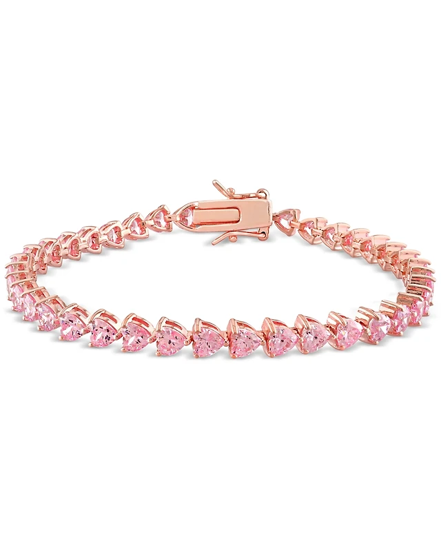 Lab-Grown Pink Sapphire Heart Shape Tennis Bracelet (12-1/3 ct. t.w.) in Rose-Plated Sterling Silver
