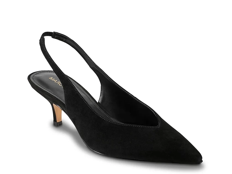 Keep your style looking sophisticated in the Labela pump from Marc Fisher. The sleek slingback keeps the look classic, while the suede material adds a quality touch. Complete with a kitten heel for a little bit of lift and an almond toe for a fashionable flair.