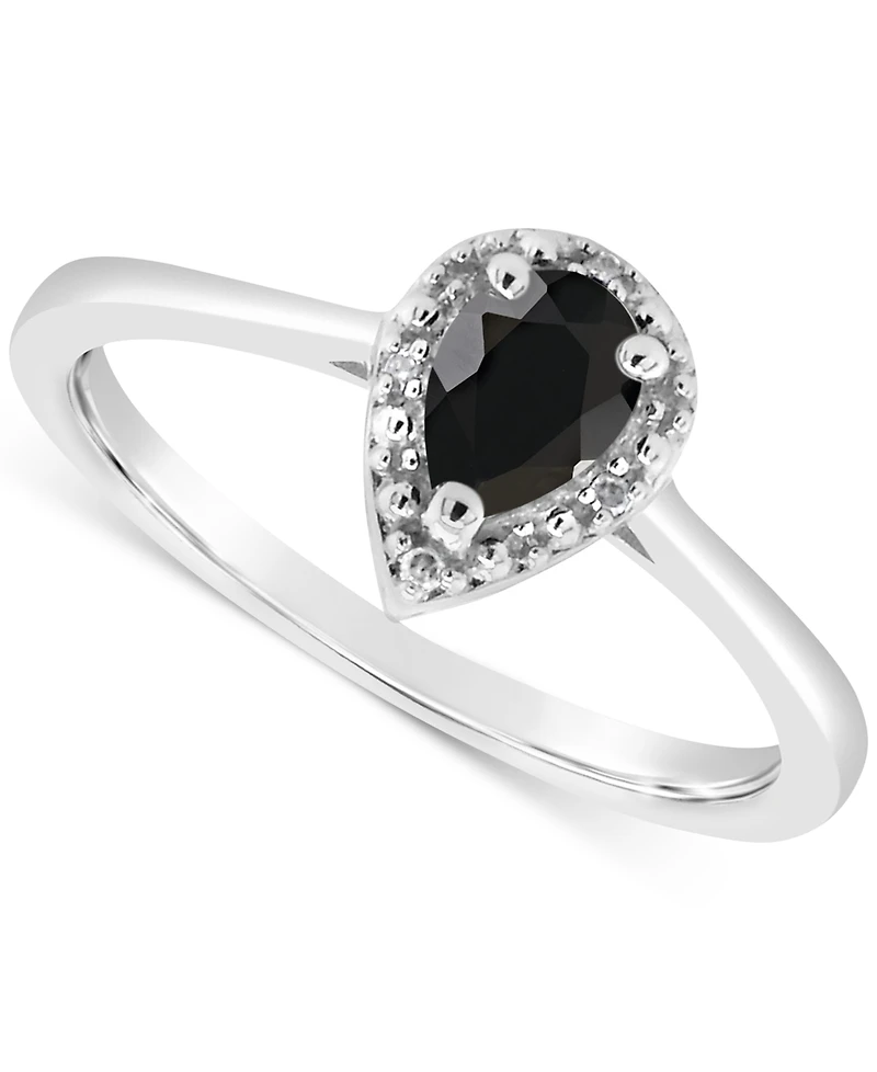 Labradorite & Diamond Accent Pear Ring Sterling Silver (Also Onyx Turquoise)