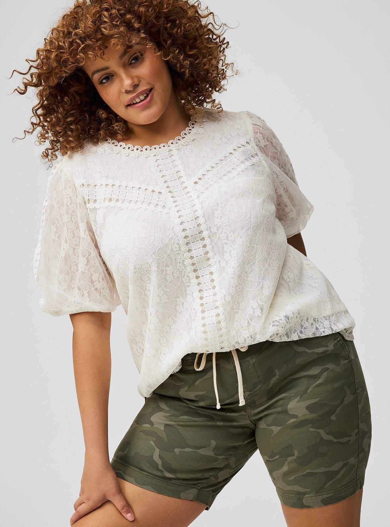 Lace Puff Short Sleeve Blouse in Bloomington, MN