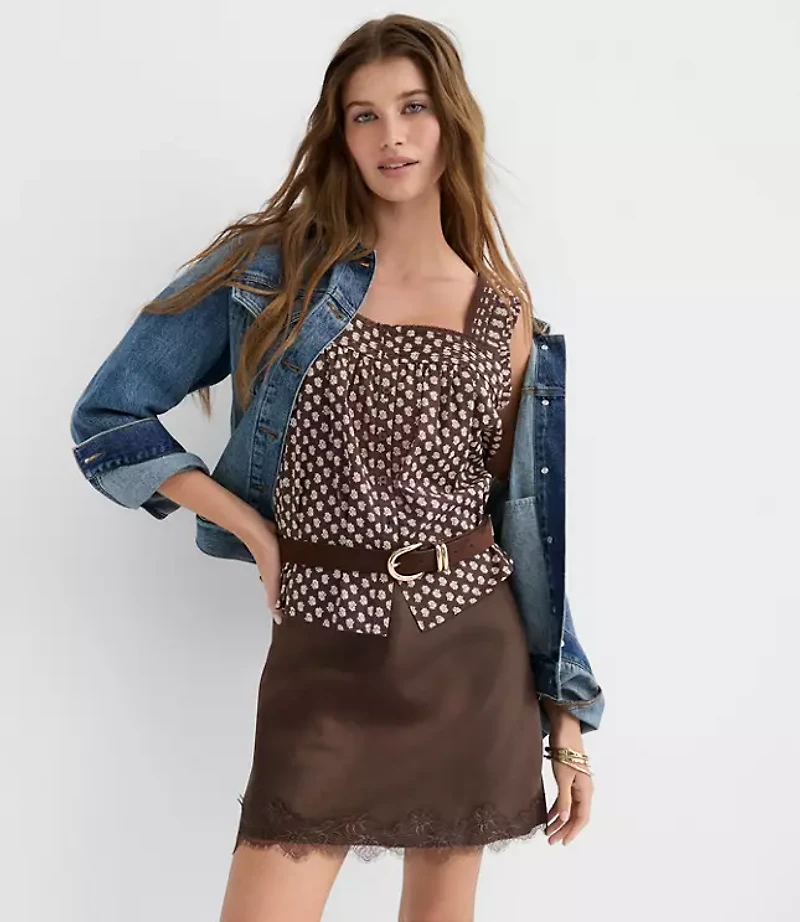 With intricate lace trim, this luxe crushed satin skirt takes your look into ultra - glam territory. Elasticized waist Lined, Imported:, Fit: Swing - fits loose and swingy, Length: 19"long, Fabrication: 100% Polyester, Garment Care: Machine Washable Loft Lace Trim Satin Bias Mini Skirt Size 2XS Deepest Brown Women's by Loft Size Regular - 2XS Deepest Brown Women's Shift, Skirts 100% Polyester Machine Washable