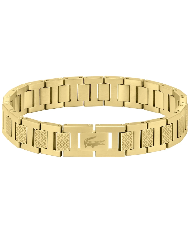 Expressing iconic Lacoste Dna throughout its design, the Metropole bracelet features an elegant H-link style with petit pique center links. This adjustable design offers contrasting polished and etched finishes that catch the light for a refined look.