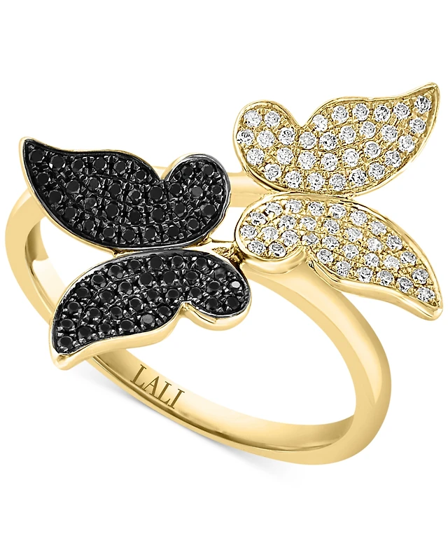 Lali Jewels Black & White Diamond Butterfly Ring (1/3 ct. t.w.) in 14k Gold