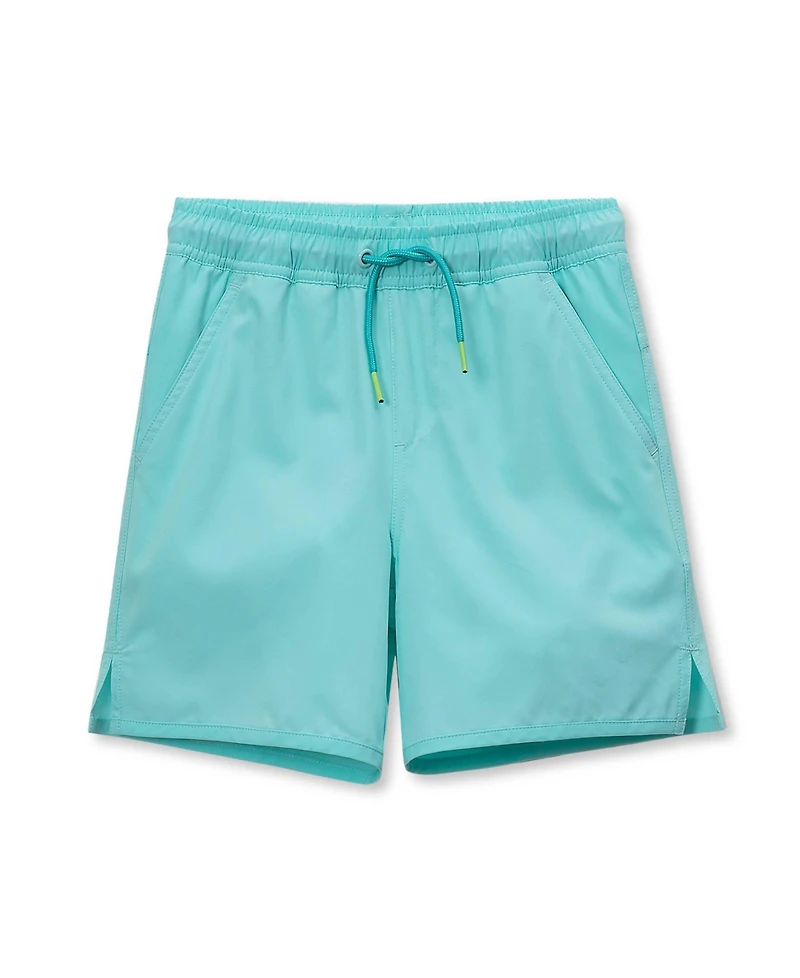 Magic happens with every splash. Our Boys Chlorine Resistant Magic Print Hydroliner Sport Swim Trunks reveal a surprise design when wet! With 4-way stretch fabric, mesh lining and functional pockets, they're ready for pool adventures. The 6" inseam provides just-right coverage for active swimmers..