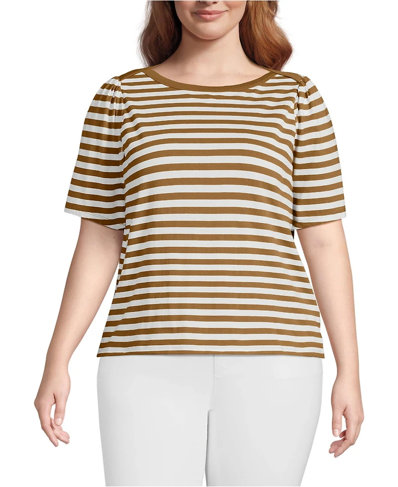 Lands' End Plus Elbow Sleeve Supima Cotton Boatneck T-Shirt