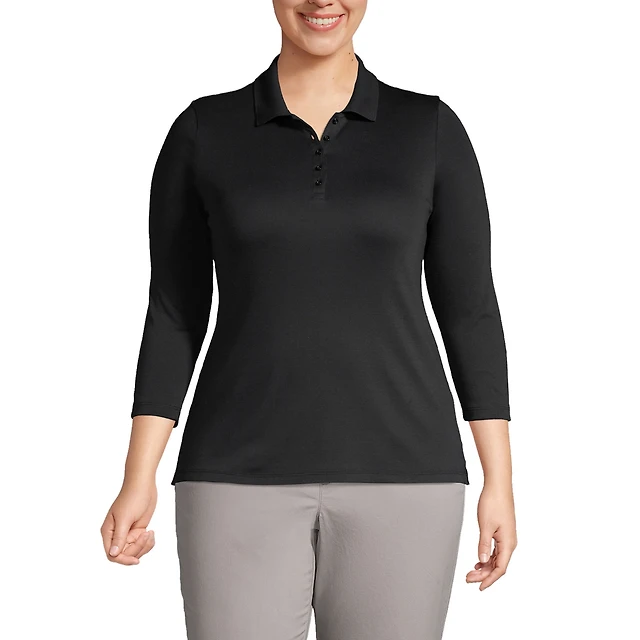 Lands' End Plus Supima Cotton 3/4 Sleeve Polo Shirt