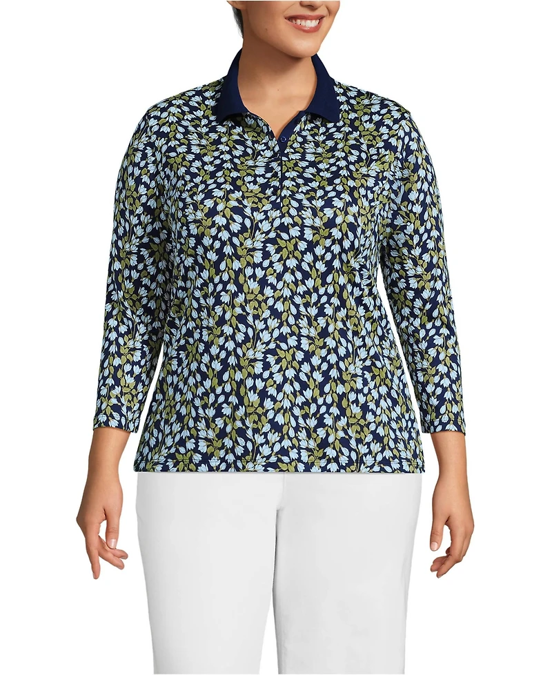 Lands' End Plus Supima Cotton 3/4 Sleeve Polo Shirt