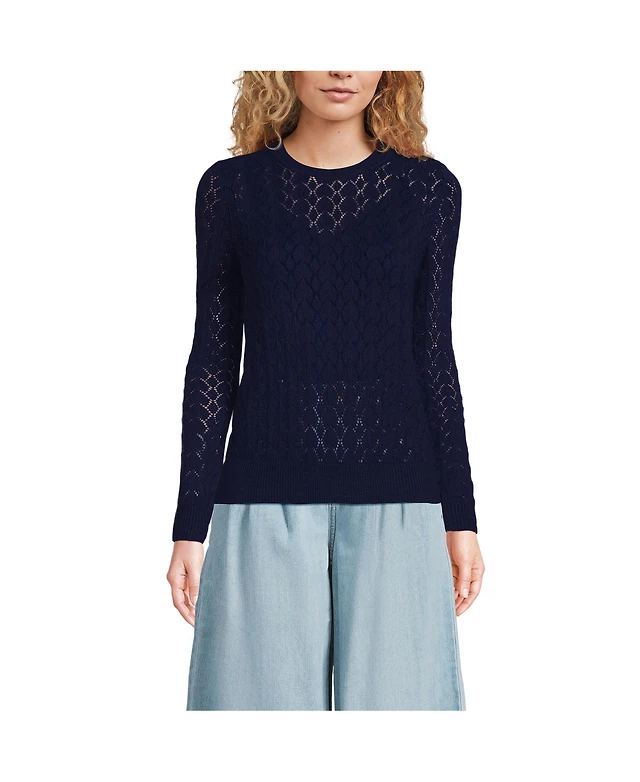 Lands' End Women's Cotton Blend Pointelle Crew Neck Sweater