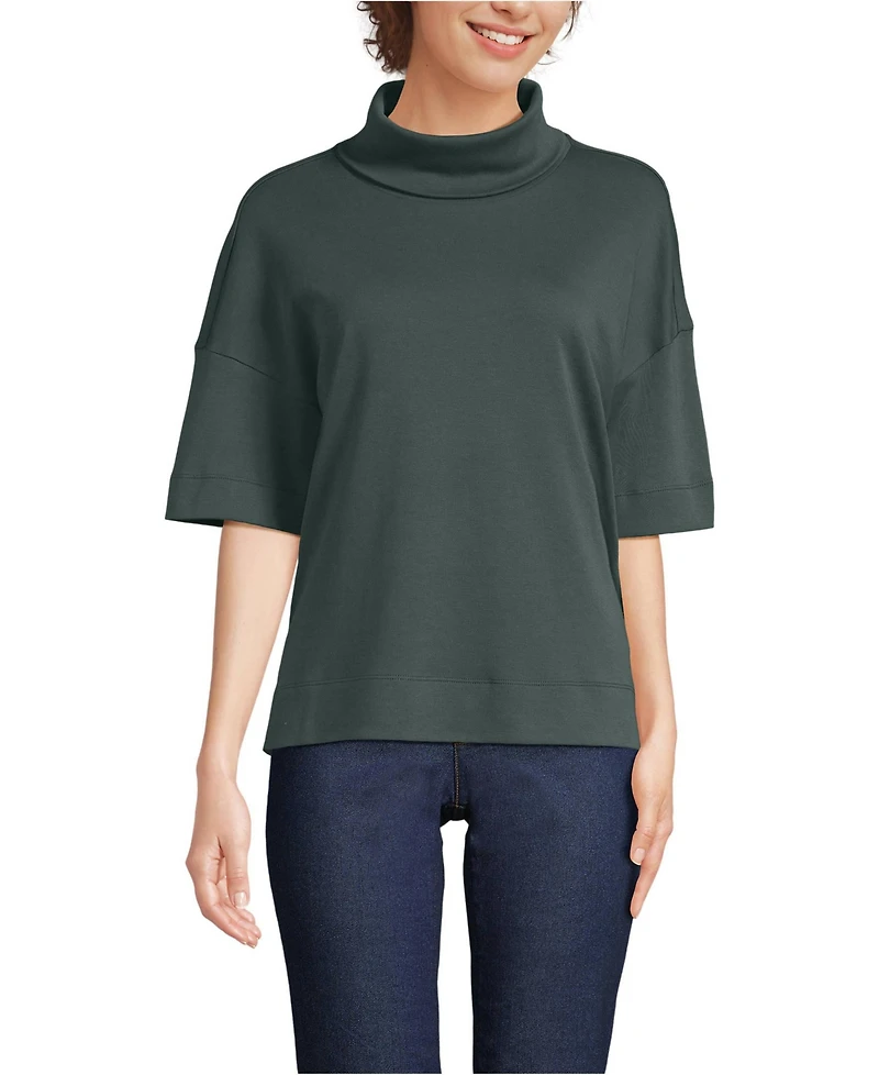 Lands' End Women's Elbow Sleeve Supima Cotton Relaxed Turtleneck