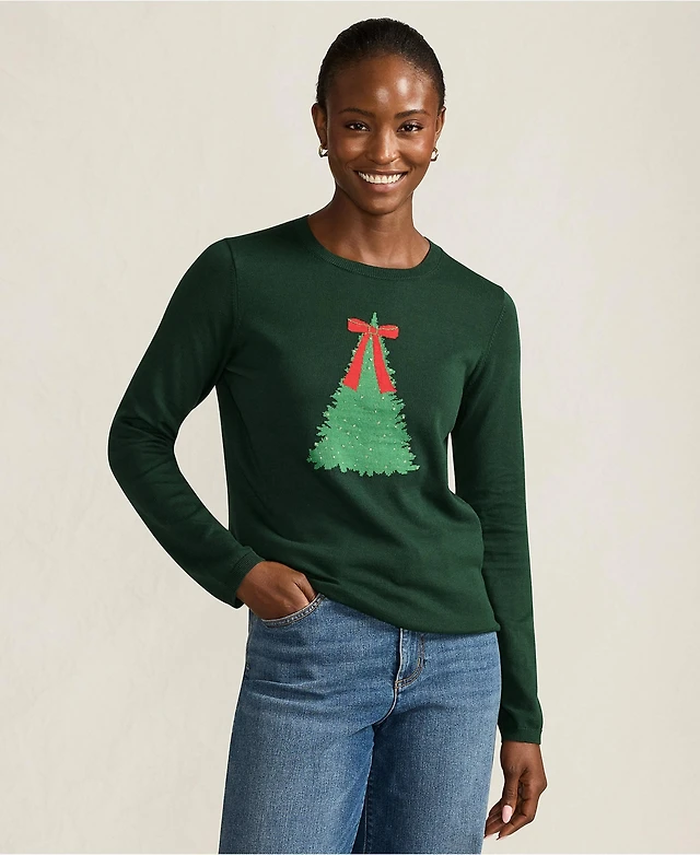 Lands' End Women's Fine Gauge Placed Jacquard Crew Neck Sweater