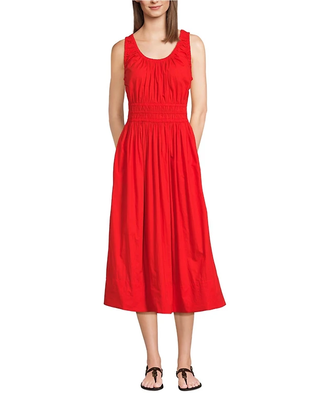 Lands' End Women's Sleeveless Poplin Smocked Midi Dress