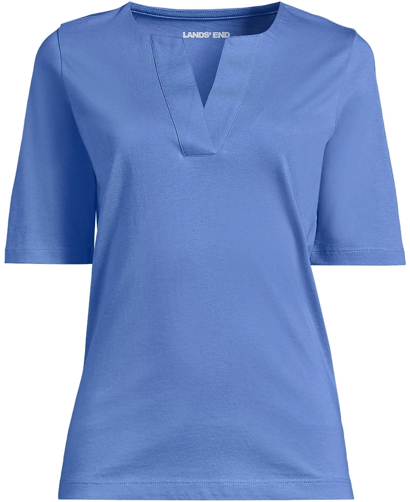 Lands' End Women's Supima Jersey Half Sleeve Splitneck Shirt