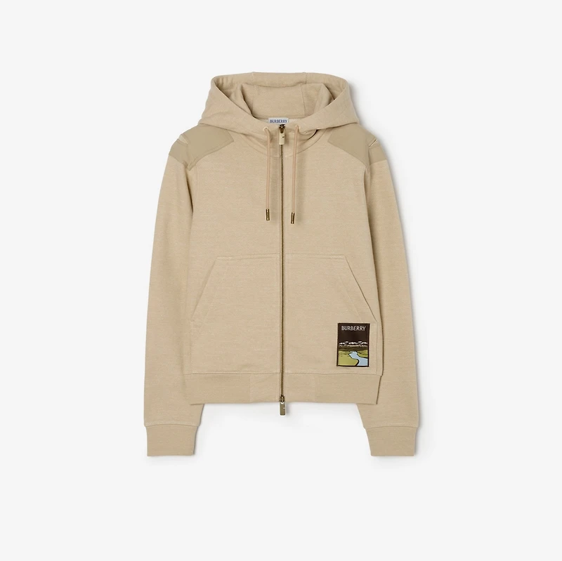 Landscape Label Cotton Zip Hoodie in Dune beige melange - Women | Burberry® Official in Bloomington, MN