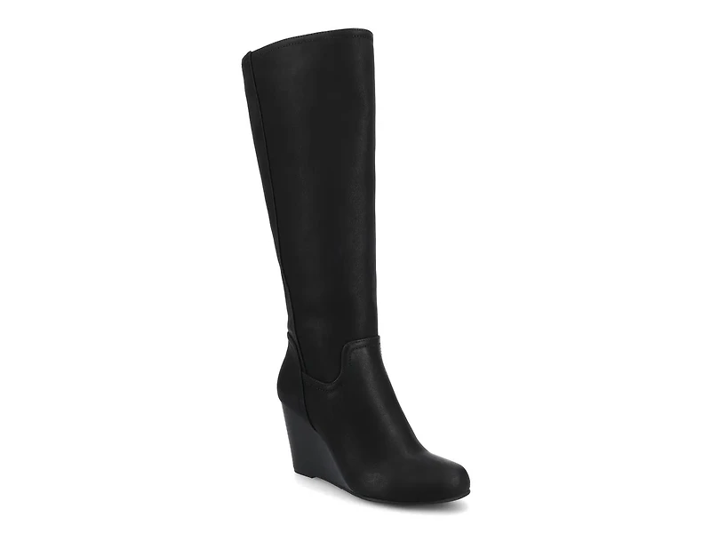 Zip up and show off these wedge boots from Journee Collection. The Langly tall boot is sure to give your look a lift with its simple yet sophisticated silhouette.