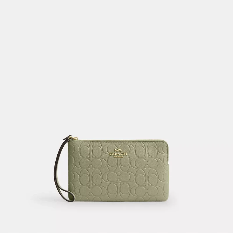 Large Corner Zip Wristlet In Signature Leather