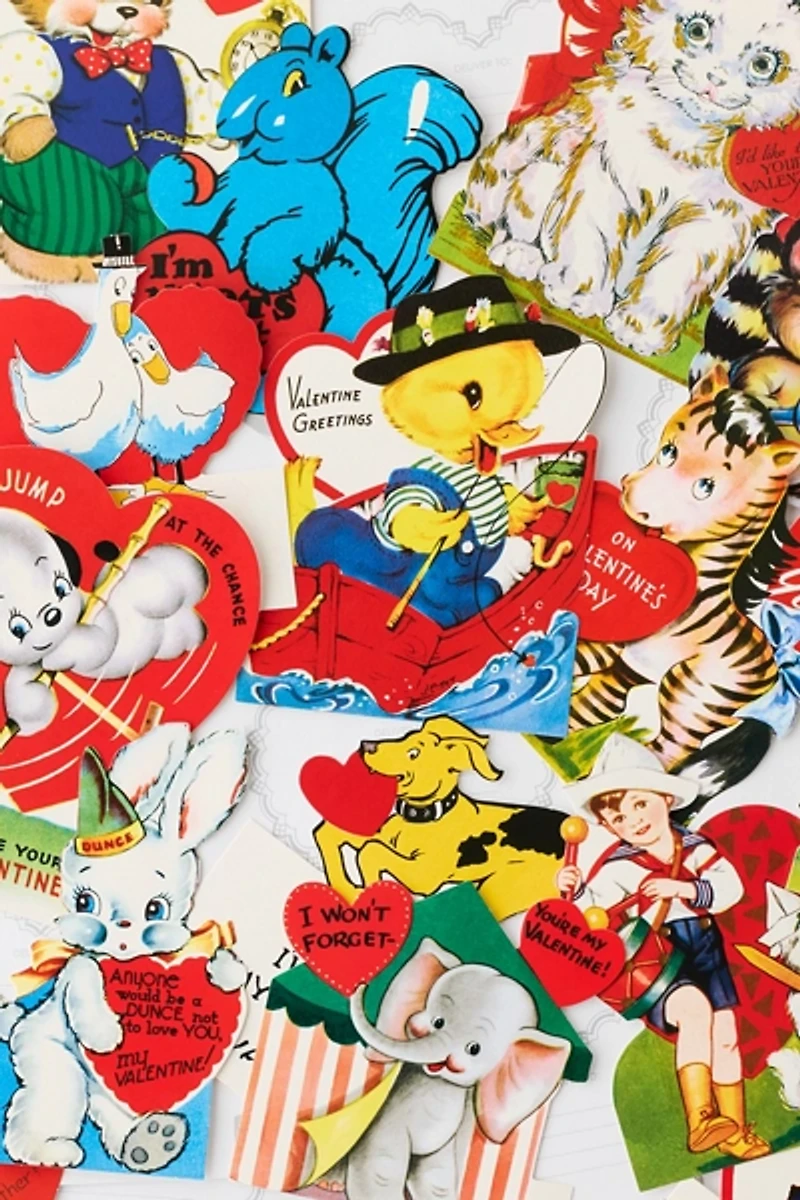 Spread love and laughs all around with this set of die-cut Valentine’s Day cards featuring unique, retro animal graphics at the front of each.