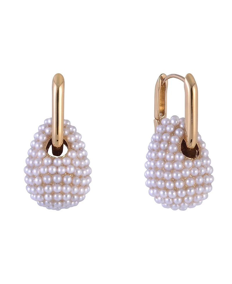 Launry by Shelli Segal Gold Tone Huggie Hoop Earrings with Pave Pearl Drop