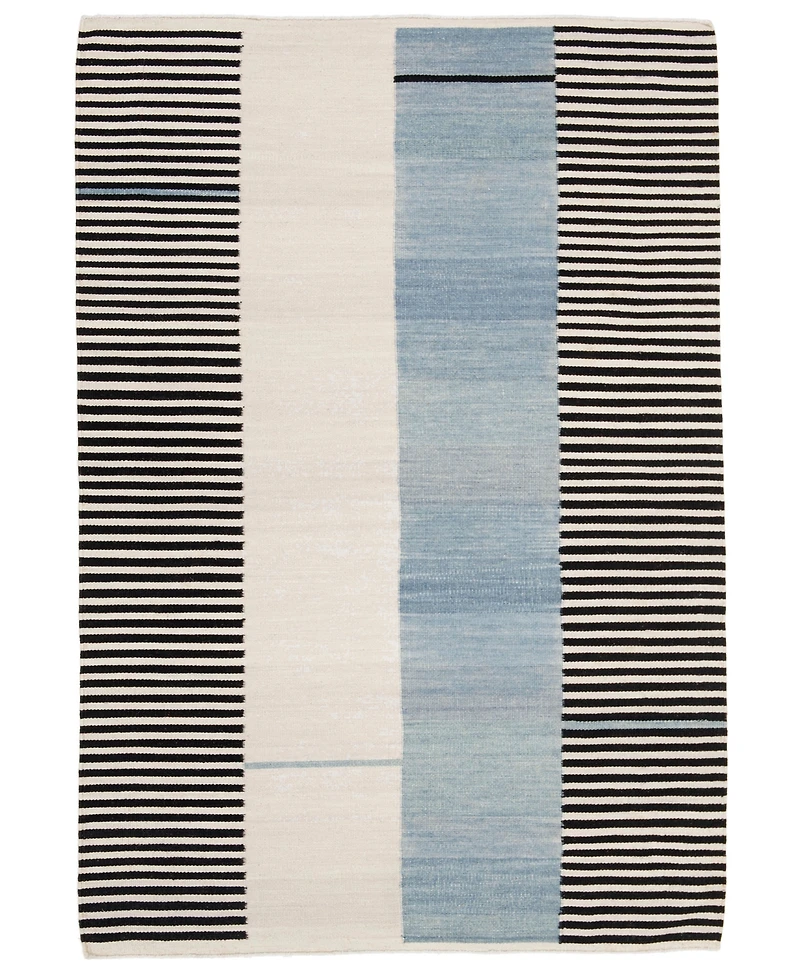 Contemporary asymmetrical design and bold, solid color statements are artfully showcased in the mod Aryn Stripe. Aryn's block structure lends balance and distinguishing character to overall striped pattern. Classic hand woven flat weave construction using pure handspun wool.