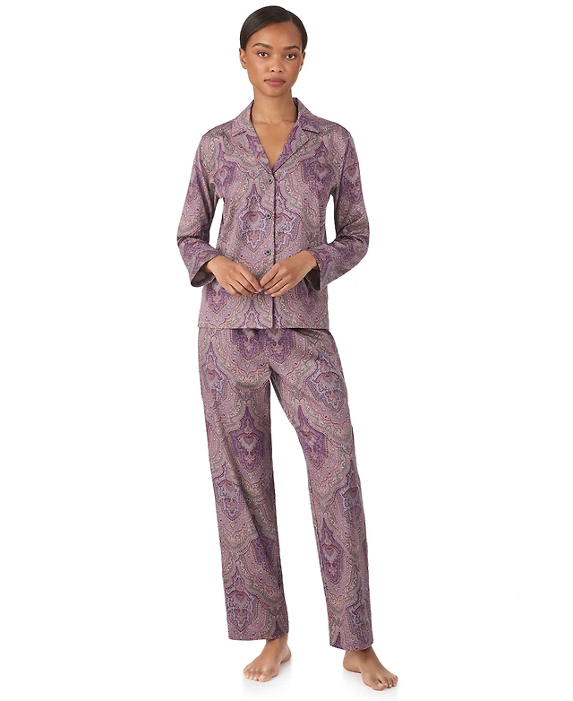 Lauren Ralph Women's Long-Sleeve Notch Collar Top and Pants Pajama Set