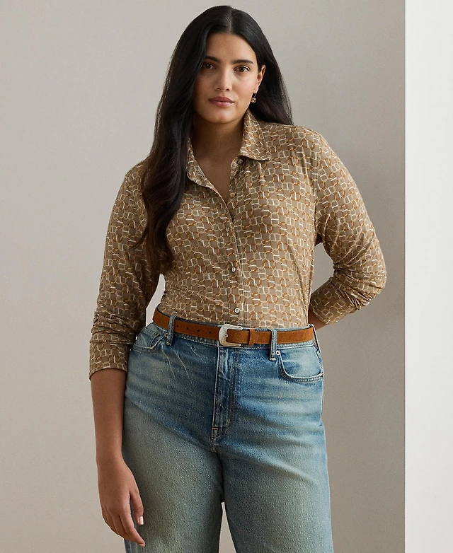 Lauren Ralph Lauren Plus Size Slim Fit Geo-Print Jersey Shirt