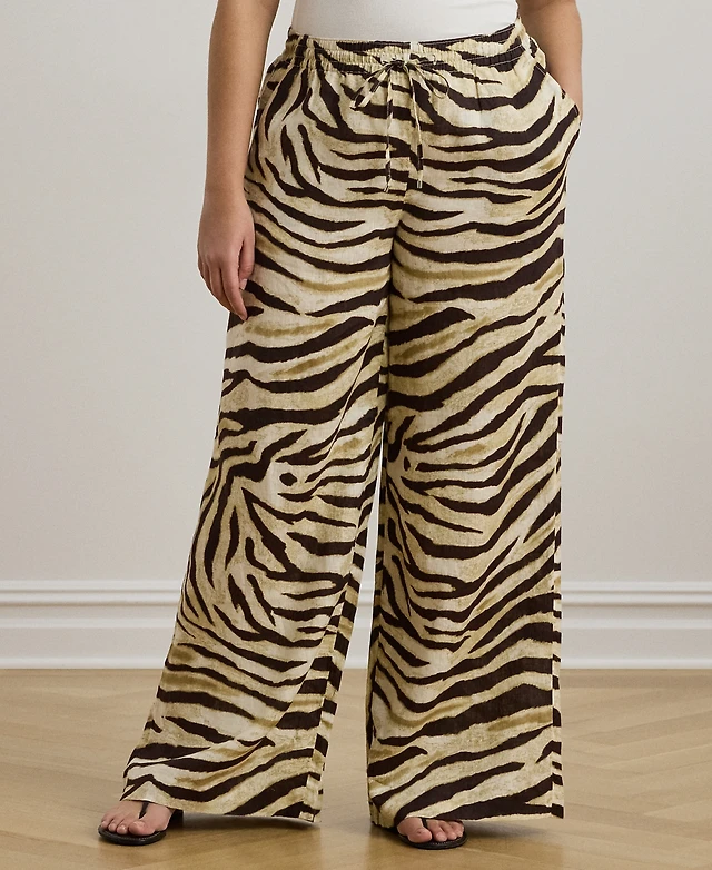 Lauren Ralph Lauren Plus Size Zebra-Print Linen Wide-Leg Pants