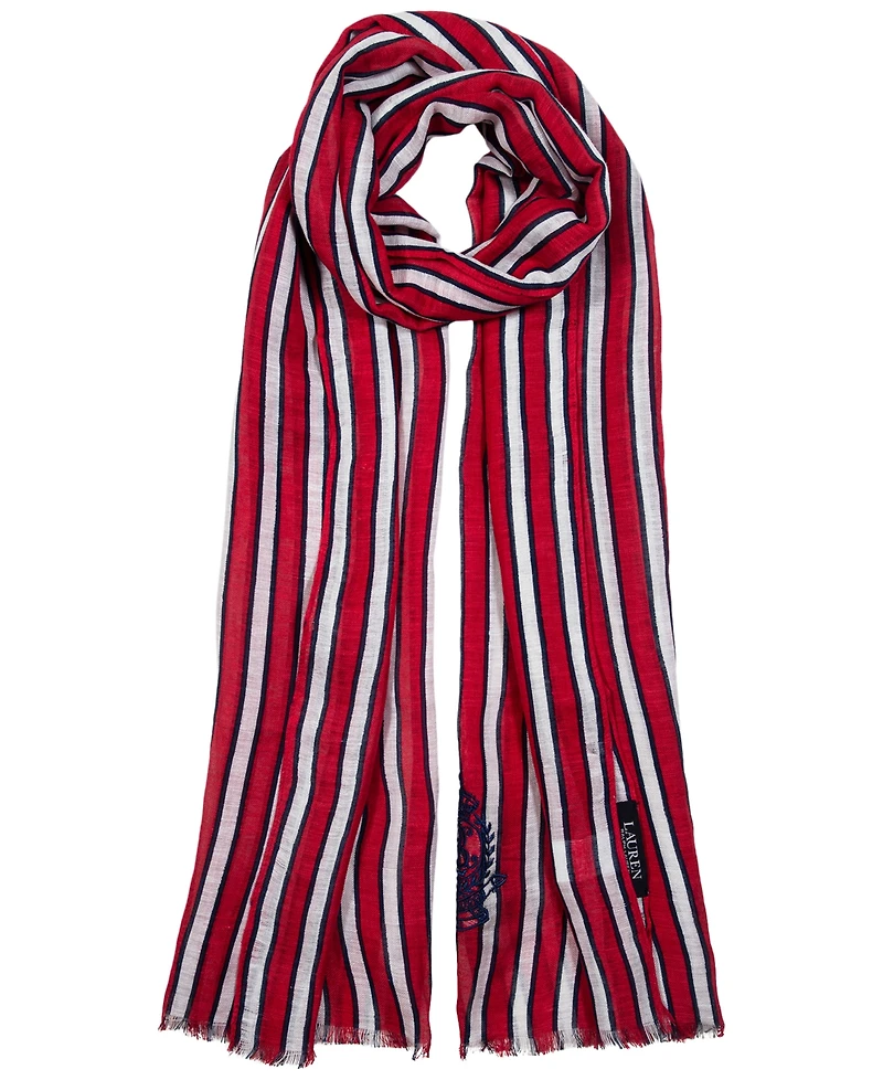 Light and effortless, this Lauren Ralph Lauren scarf is woven from a breathable linen-and-cotton blend and features soft, tonal spring stripes. The airy texture and natural drape create an understated accent suited for relaxed, sunlit days.