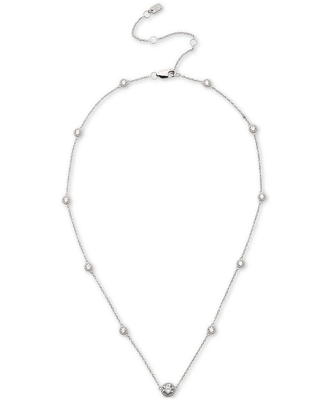 Lauren Ralph Lauren Sterling Silver Cubic Zirconia Station Collar Necklace, 16" + 3" extender