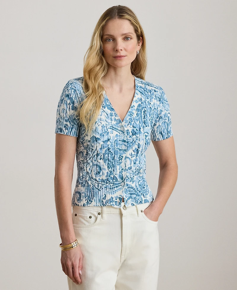 Lauren Ralph Petite Paisley-Print Cable-Knit V-Neck Cardigan