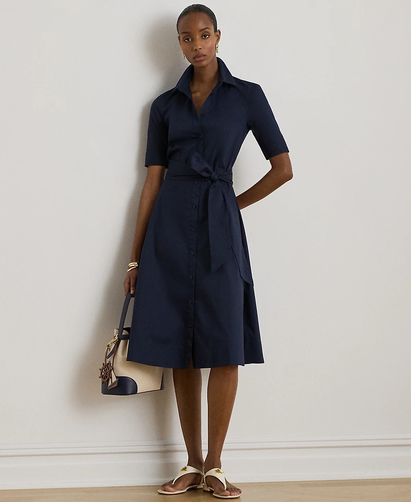 Celebrating a classic fit-and-flare silhouette, this shirt dress from Lauren Ralph Lauren includes a waist-accentuating self-belt for definition. Signature engraved buttons and a point collar deliver timeless polish.