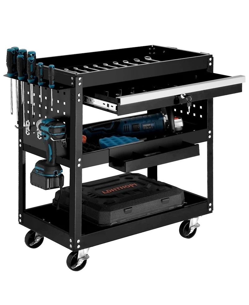 Ldhthopi 3 Tier Rolling Tool Cart All Metal Utility Cart with Wheels 330 lb Capacity and Storage Shelves for Garage or Workshop