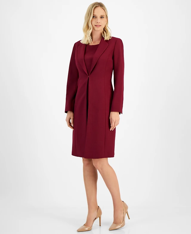 Le Suit Women's Topper Jacket & Round-Neck Sheath Dress, Regular Petites