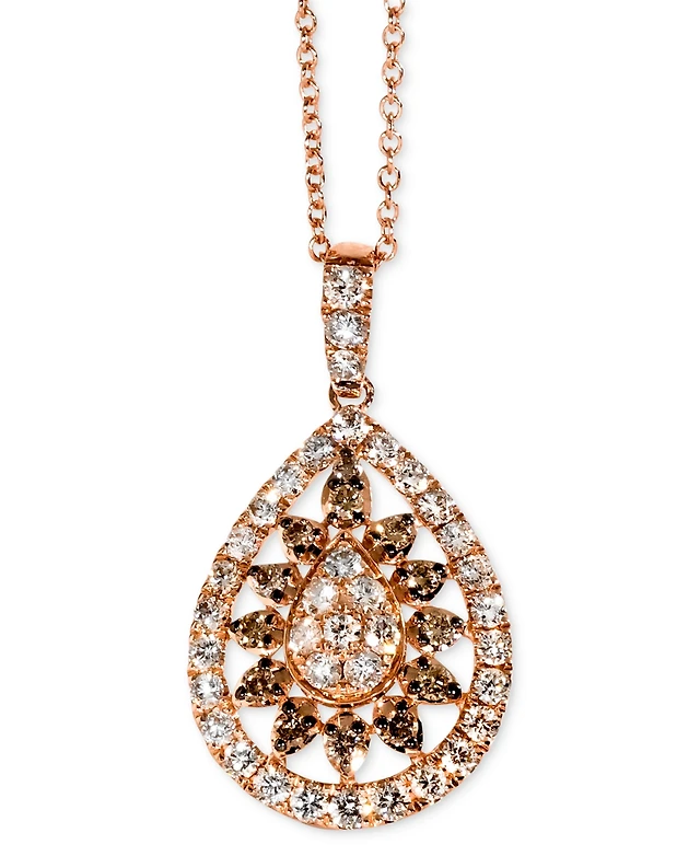 Le Vian Chocolate Diamond & Nude Diamond Teardrop Halo Cluster Adjustable 20" Pendant Necklace (3/4 ct. t.w.) in 14k Rose Gold