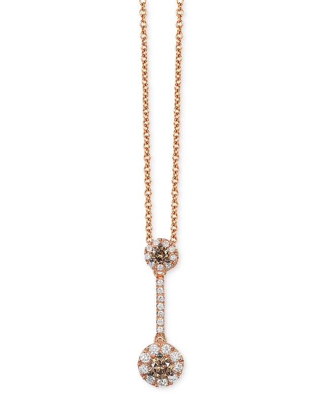 Le Vian Chocolatier Chocolate Diamond & Vanilla Diamond Double Drop Halo 18" Pendant Necklace (1/3 ct. t.w.) in 14k Rose Gold