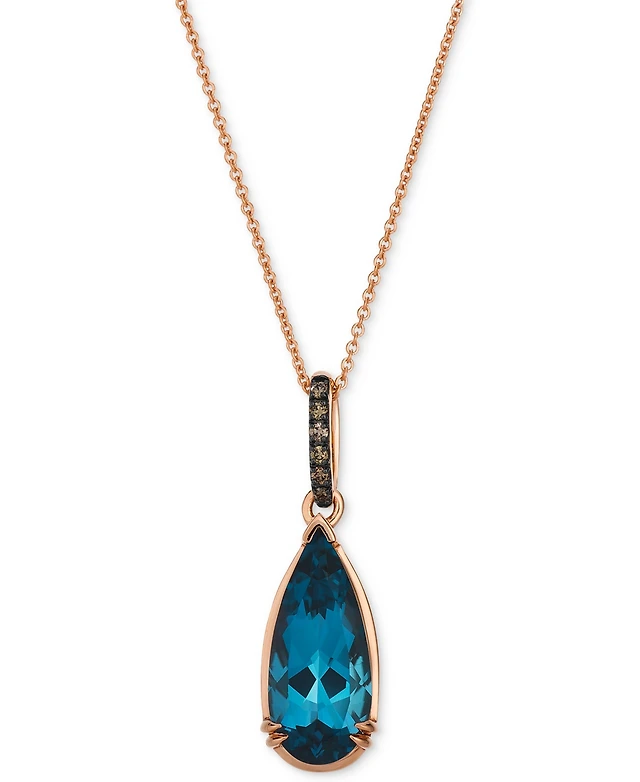 Le Vian Chocolatier Deep Sea Blue Topaz (3-1/2 ct. t.w.) & Chocolate Diamond (1/20 ct. t.w) Pendant Necklace in 14k Rose Gold, 20"