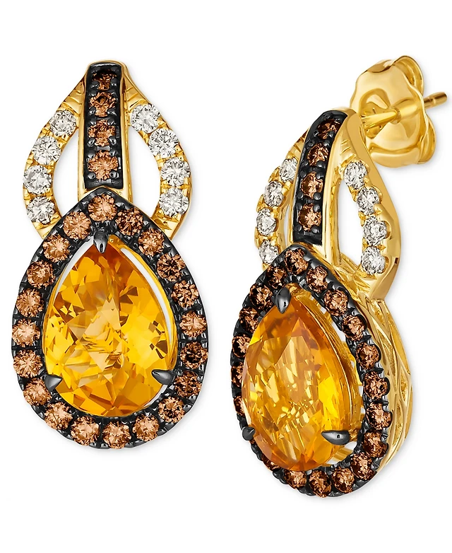 Le Vian Cinnamon Citrine (1-1/2 ct. t.w.) & Diamond (1-1/6 ct. t.w.) Pear Drop Earrings in 14k Gold