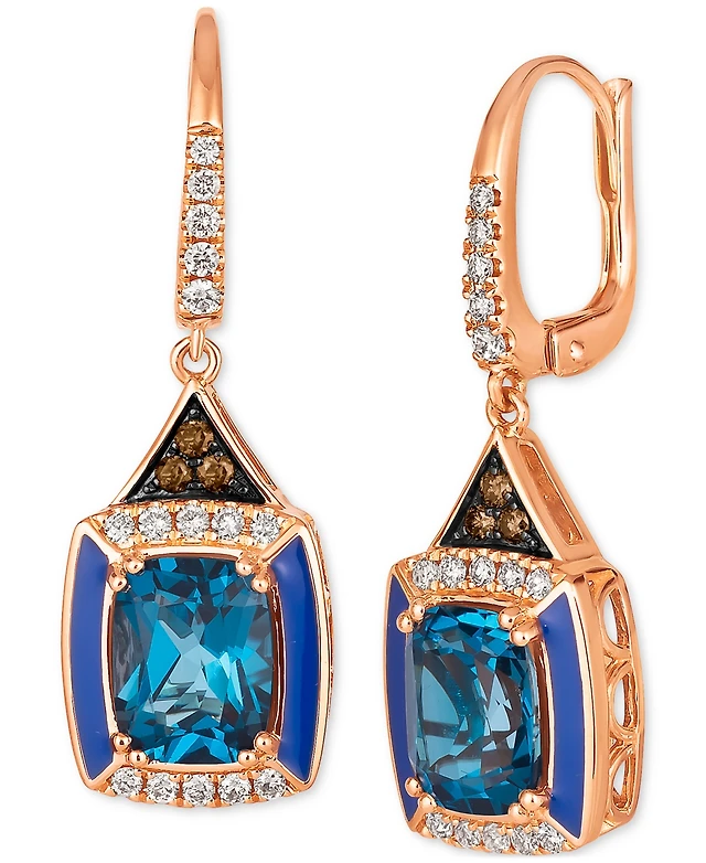 Le Vian Deep Sea Blue Topaz (4-1/2 ct. t.w.), Nude Diamonds (1/3 ct. t.w.) & Chocolate Diamonds (1/10 ct. t.w.) Drop Earrings in 14k Rose Gold