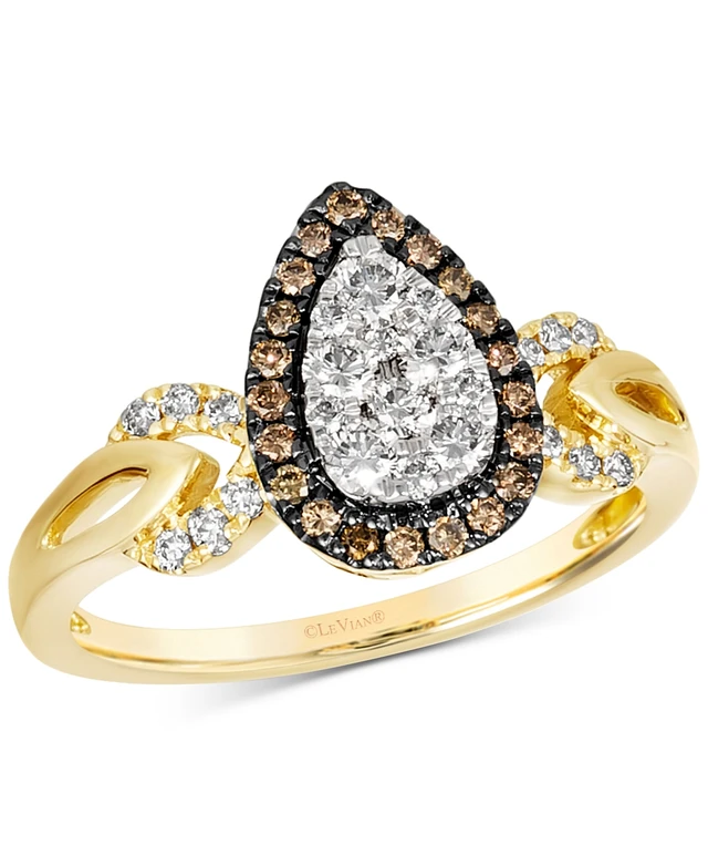 Le Vian Nude Diamond & Chocolate Diamond Pear Halo Ring (1/2 ct. t.w.) in 14k Two-Tone Gold