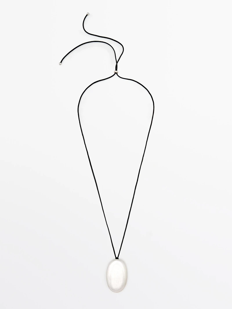 Leather cord necklace with metal piece in Bloomington, MN