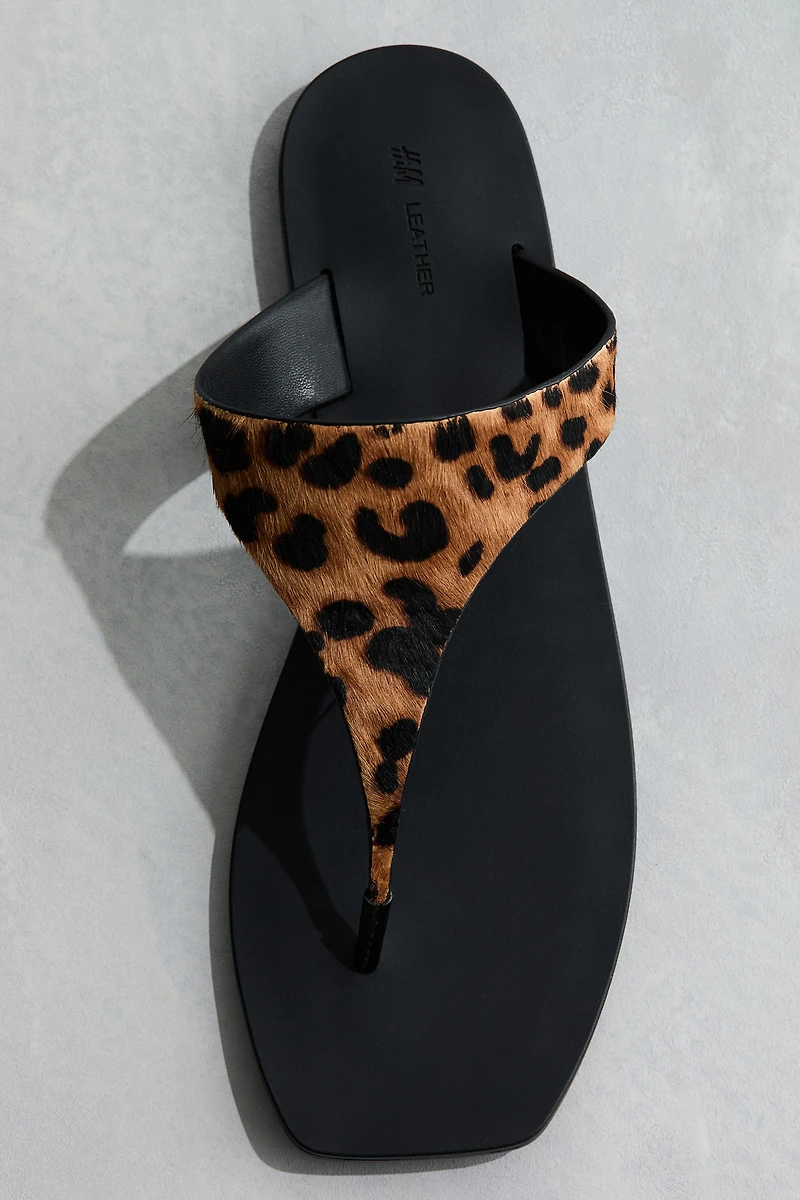 Flat sandals in suede with square toes, narrow toe post, wide foot strap.