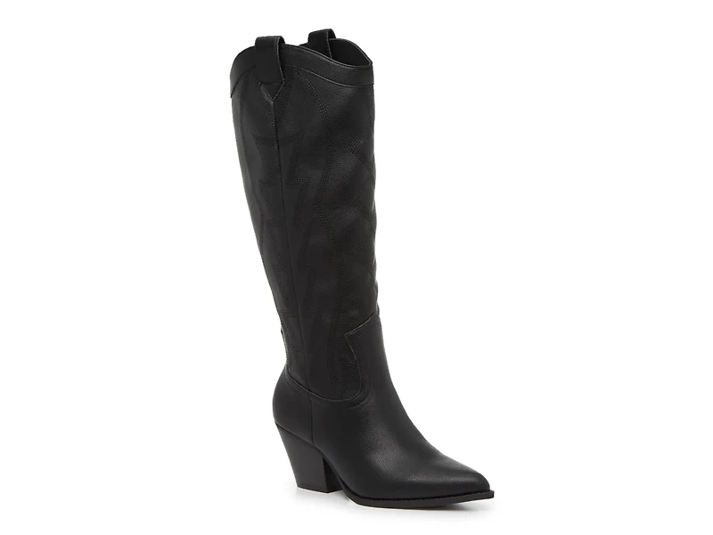 Keep it cool in these country-inspired kicks! The Leeah cowboy boots from Mix No. 6 features a western silhouette, a solid stacked heel, and intricate stitching along the shaft. Now complete with a wide calf design that adds a roomier fit.