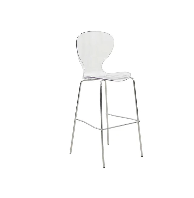 LeisureMod Oyster Acrylic Barstool with Steel Frame in Chrome Finish
