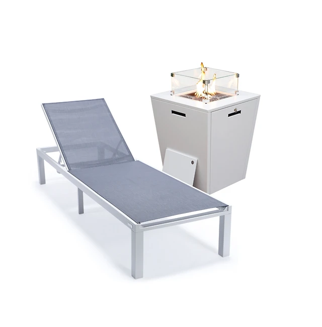 LeisureMod Marlin Patio Chaise Lounge Chair With White Aluminum Frame