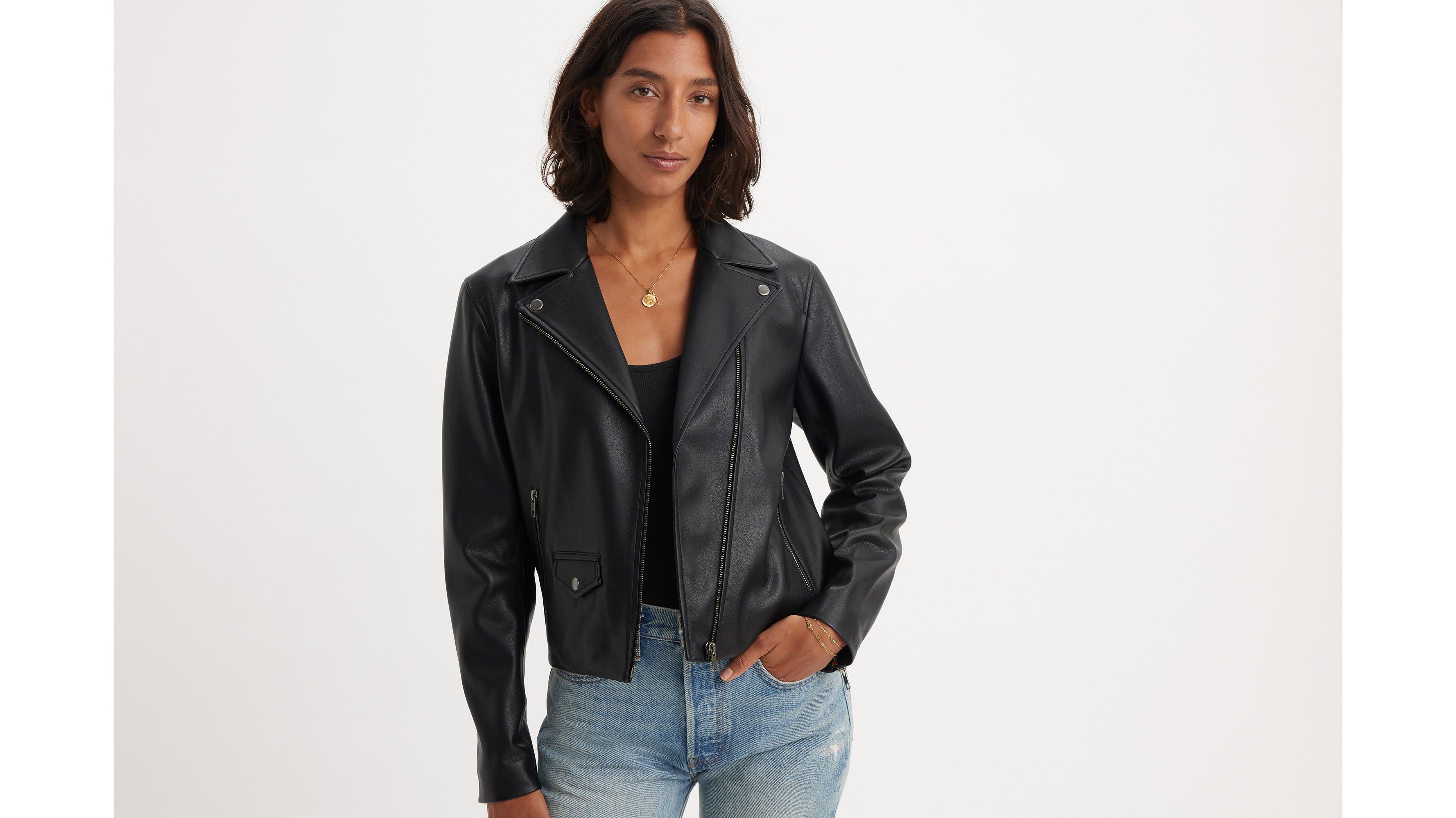 Versatile and effortlessly cool, our Lelou Shrunken Moto Jacket was designed with an asymmetrical zip-up design, two side pockets and a slim, cropped fit.