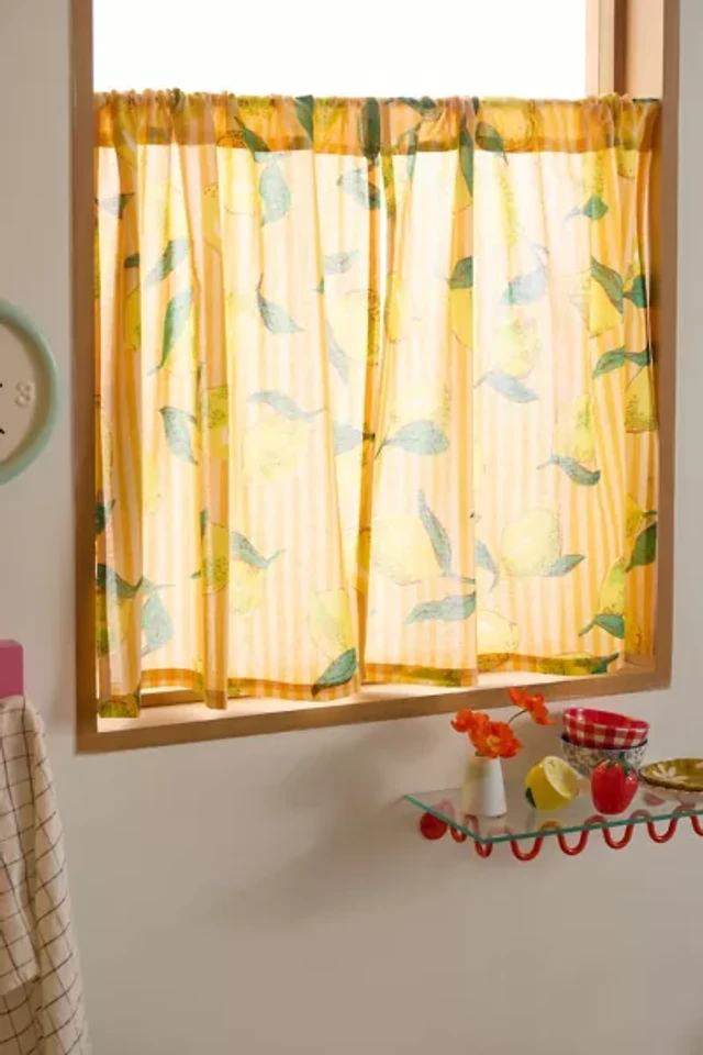 Lemon Graphic Stripe Patterned Café Curtain Set