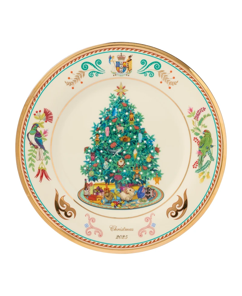 Mere Kirihimete!"" as the kiwis say. Influenced by island life and the culture of the native Maori people, Christmas in New Zealand is a season-mingling celebration centered around the country's Pohutukawa tree. Its spirit is elegantly and symbolically captured in the 2025 annual Lenox plate giving tribute to Christmas tree traditions from around the world.