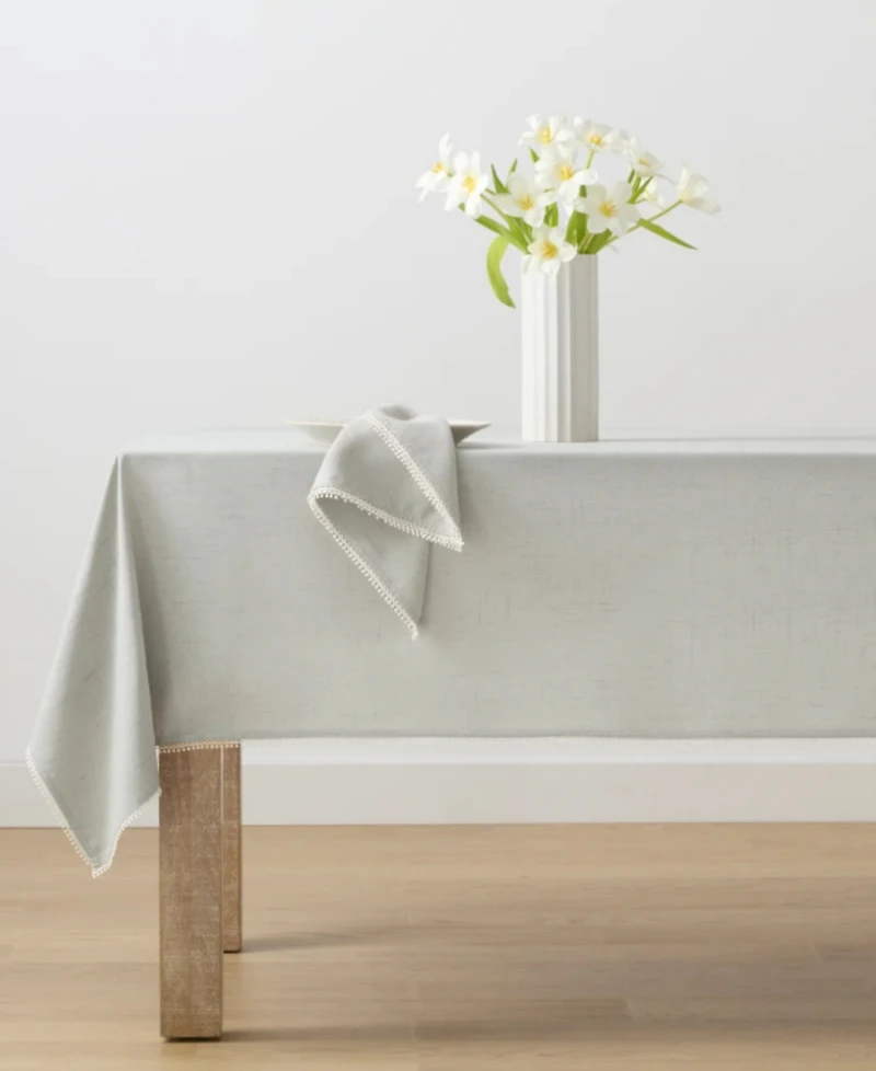 The French Perle table linen collection from Lenox features soft tones and a delicate, crochet bobble trim for an elegant touch to special occasions.