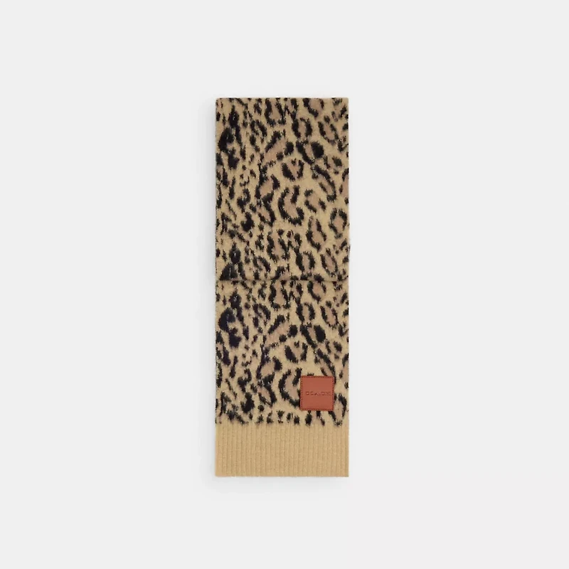 A surefire way to get spotted, this warm soft scarf features a bold leopard print. It's finished with a ribbed border and our Coach leather patch in a nod to our heritage craftsmanship.